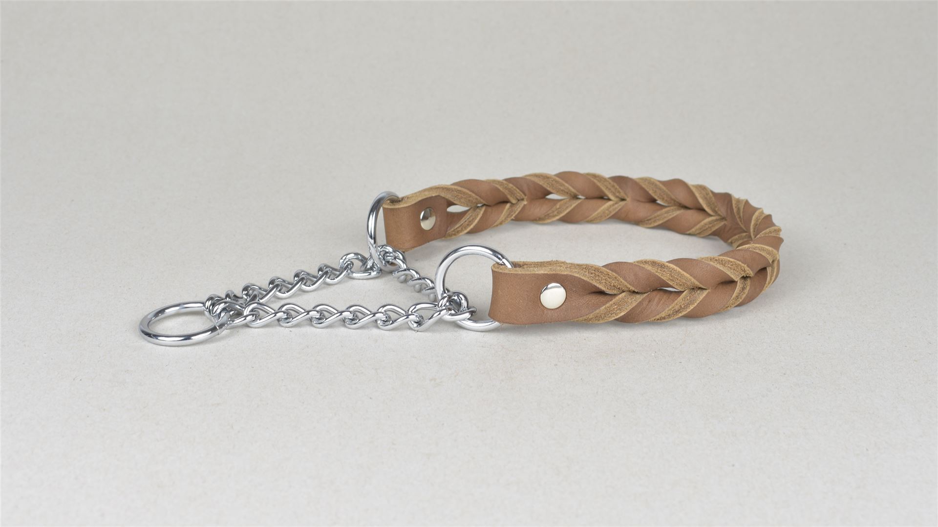 Geflochtene Halsbänder aus Fettleder mit Chromkette..